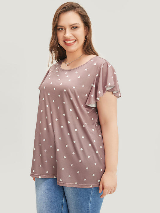 Polka Dot Ruffle Sleeve Round Neck T-shirt