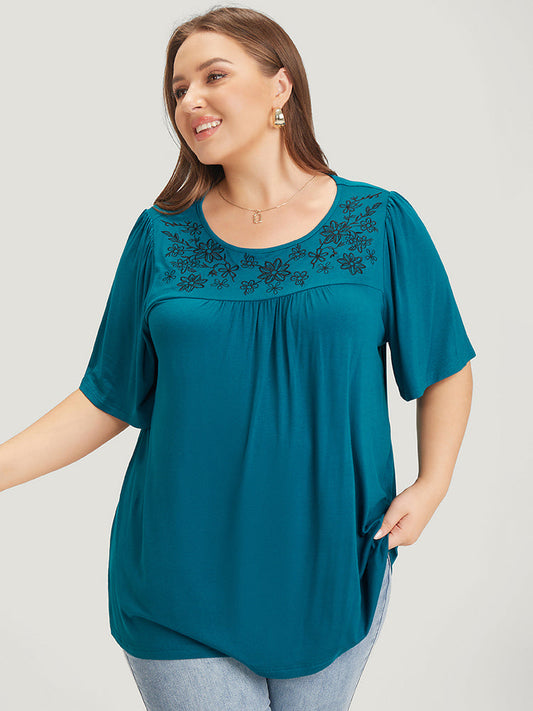 Supersoft Essentials Floral Embroidered Gathered Ruffle Sleeve T-shirt
