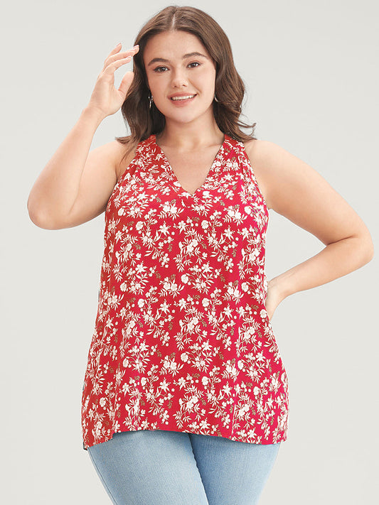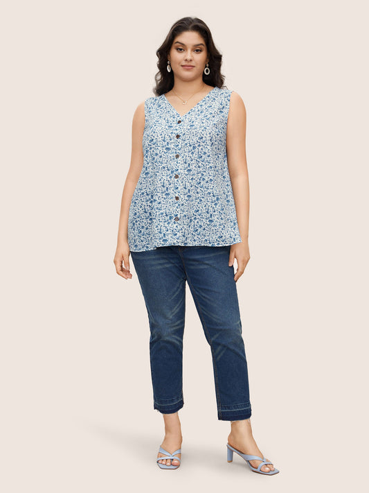 Ditsy Floral Sleeveless Button Detail Tank Top