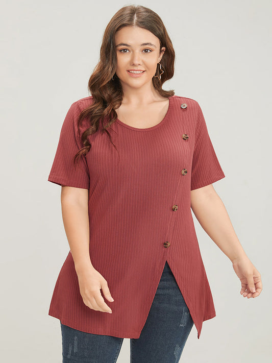 Plain Webbing Ruffle Surplice Neck T-shirt