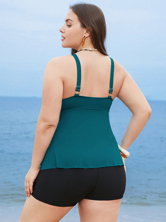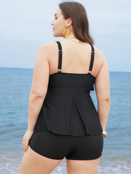 Adjustable Straps Asymmetrical Ruffle Tiered Tankini Top