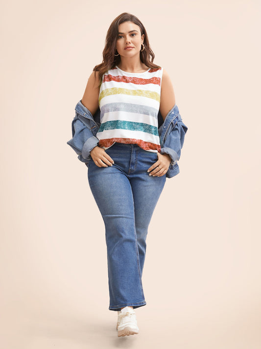Striped Contrast Crew Neck Sleeveless Tank Top