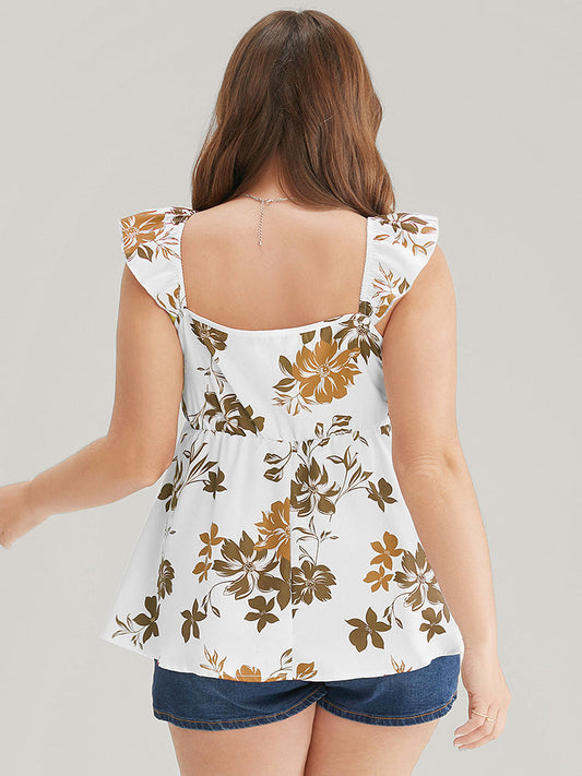 Floral Print Babydoll Ruffles Trim Cami Top