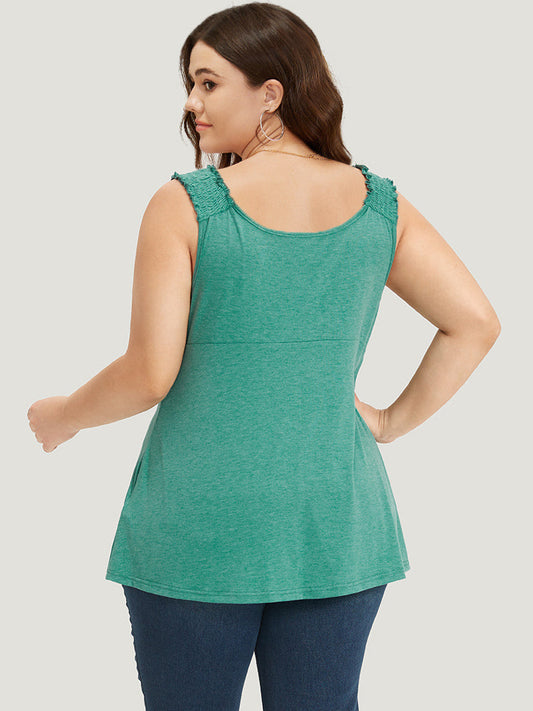Plain V Neck Ruched Shirred Tank Top