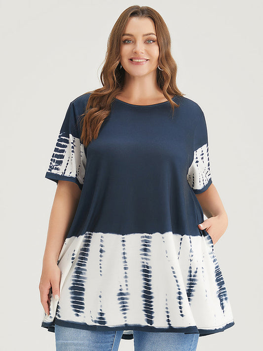 Tie Dye Patchwork Round Neck Pocket T-shirt
