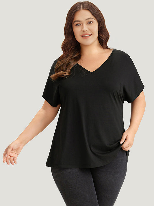 Supersoft Essentials Solid V Neck Laser Cut Dolman Sleeve T-shirt