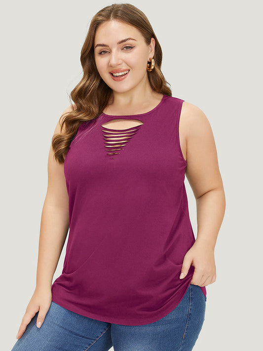 Plain Ruffles Cap Sleeve Embroidered Tank Top
