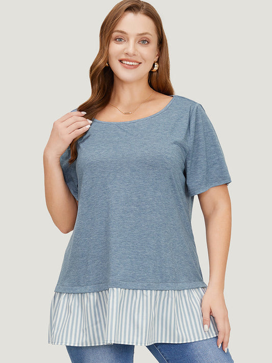 Plain Ruffle Wrap Hem Contrast Embroidered T-shirt