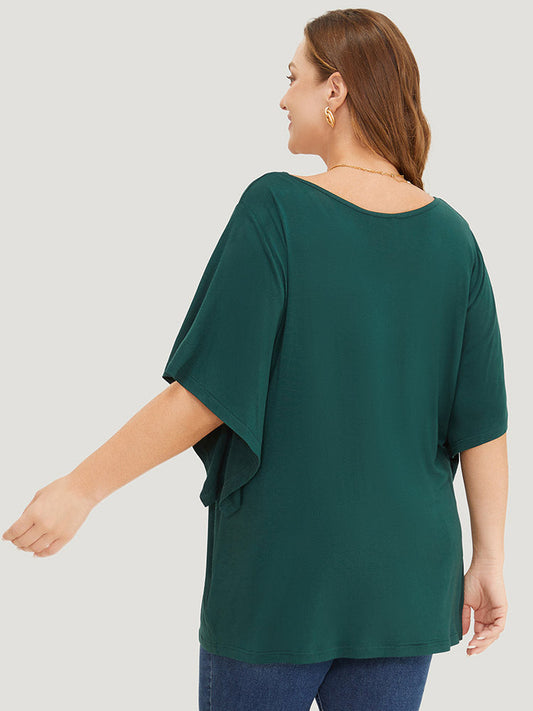 Plain Ruffles Cut Out Wrap Arc Hem T-shirt