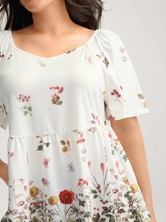 Stretchy Floral Print Babydoll Knit Top