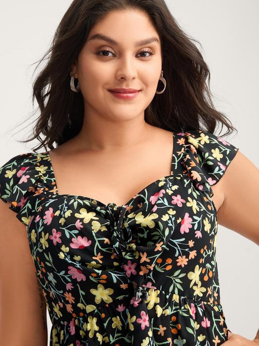 Floral Ruched Bodice Sweetheart Tank Top
