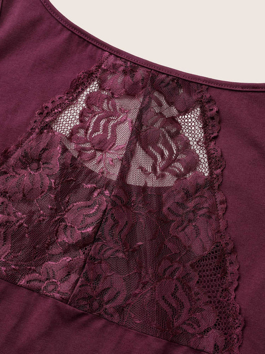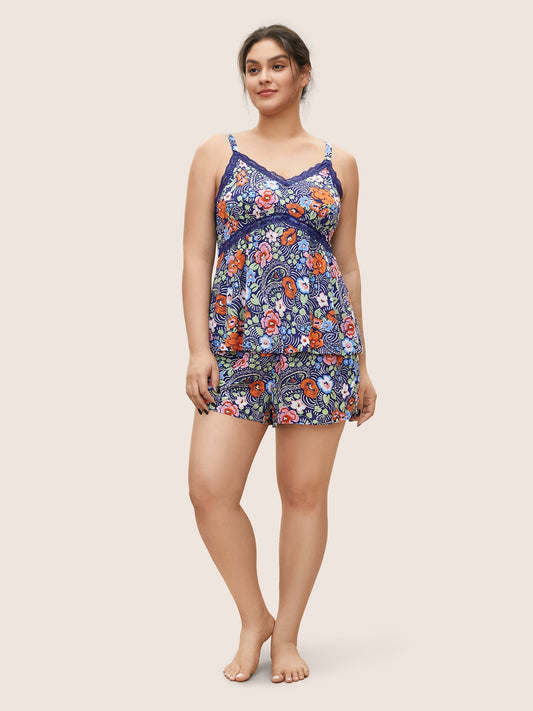 Boho Print Lace Panel Elastic Waist Sleep Top