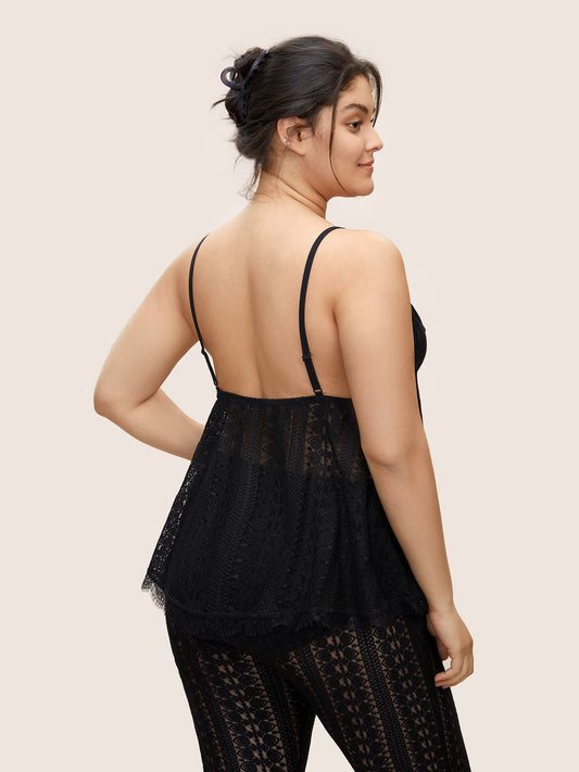 Solid Lace Panel Tiered Adjustable Straps Sleep Top