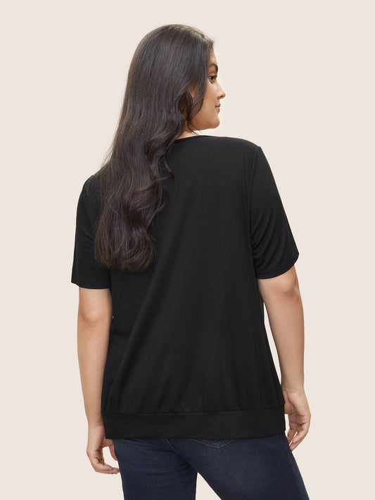 Waffle Knit Patchwork Wrap Mesh T-shirt