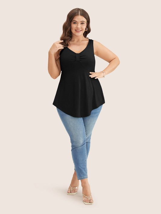 Solid Ruched Detail Asymmetrical Hem Tank Top