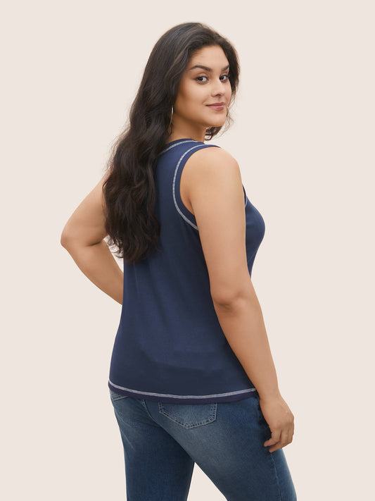 Rib Knit Contrast Topstitching Tank Top