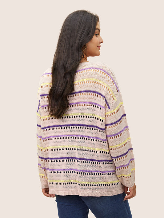 Striped Contrast Hollow Out Drop Shoulder Pullover