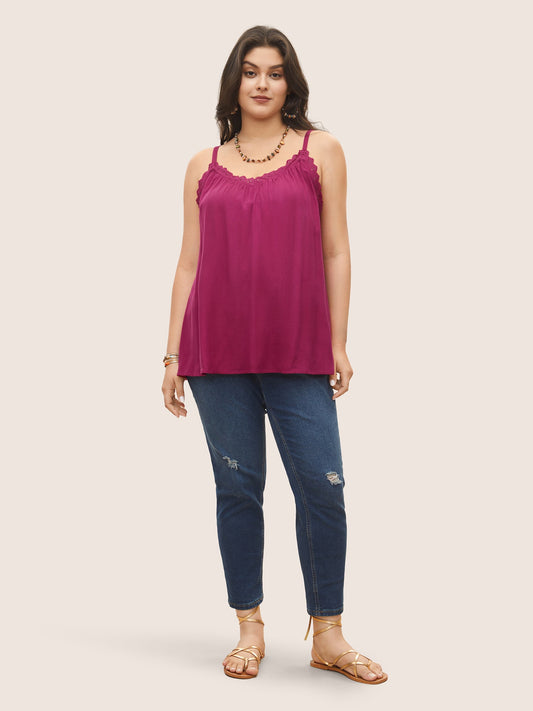 Rayon Lace Panel Gathered Cami Top
