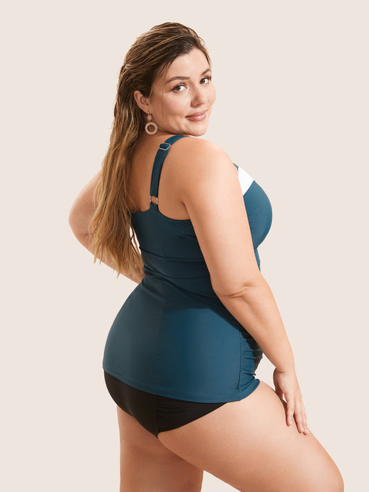 Solid Patchwork Ruched Adjustable Straps Swim Top