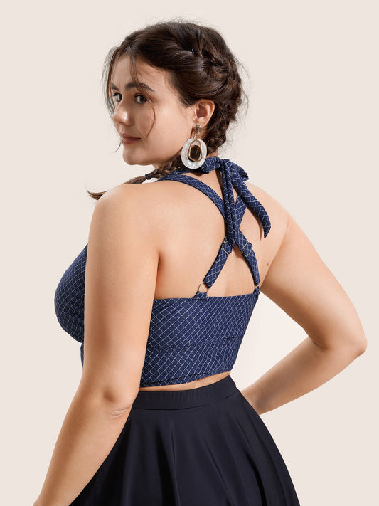 Gingham Bowknot Patchwork Adjustable Straps Swim Top