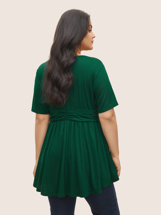 Solid Ruched Wrap Arc Hem Knit Top