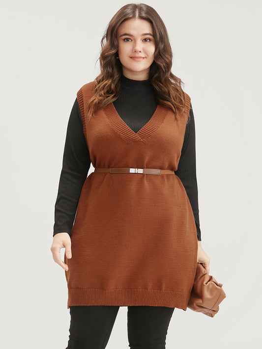 Solid Pointelle Knit V Neck Sleeveless Knit Top