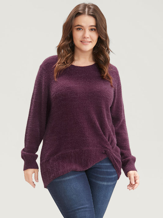 Solid Soft Sexy Yarn Knit Twist Front Fluffy Knit Top