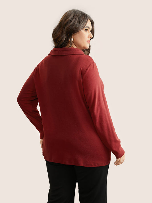 Plain Button Detail Wrap Hem T-shirt