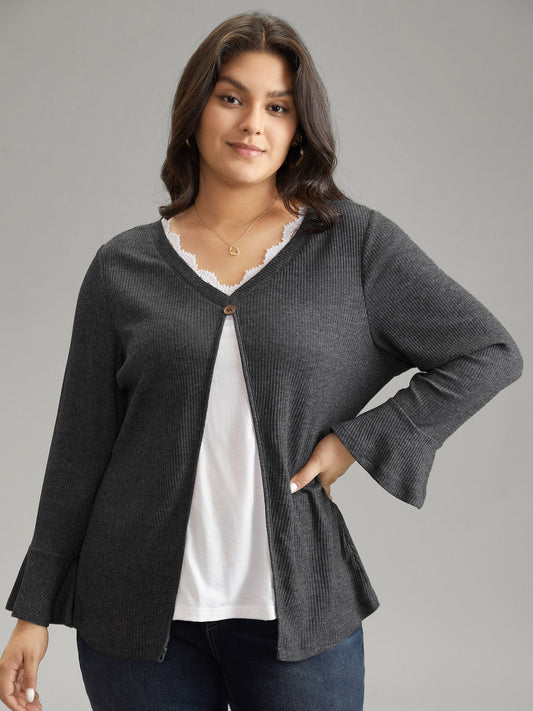 Rib Knit Patchwork Guipure Lace Bell Sleeve T-shirt