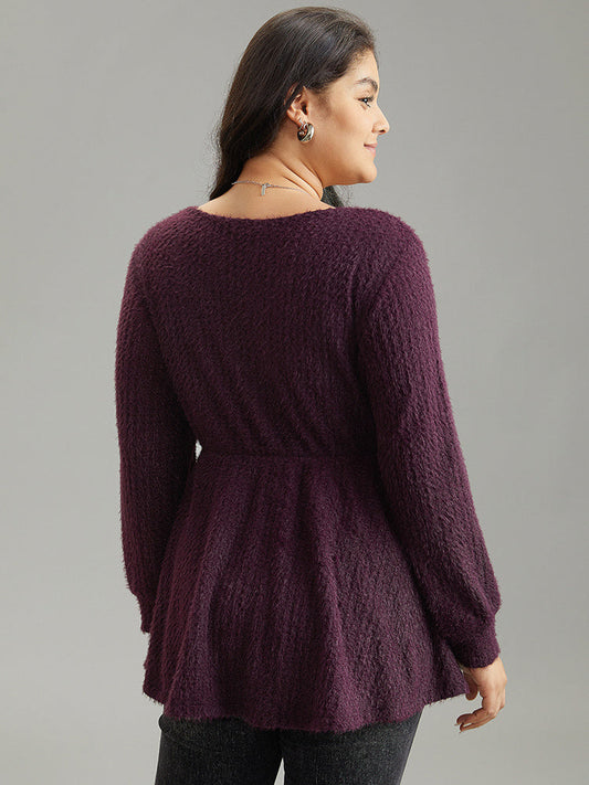 Solid Texture Fluffy Knot Ruffle Hem T-shirt