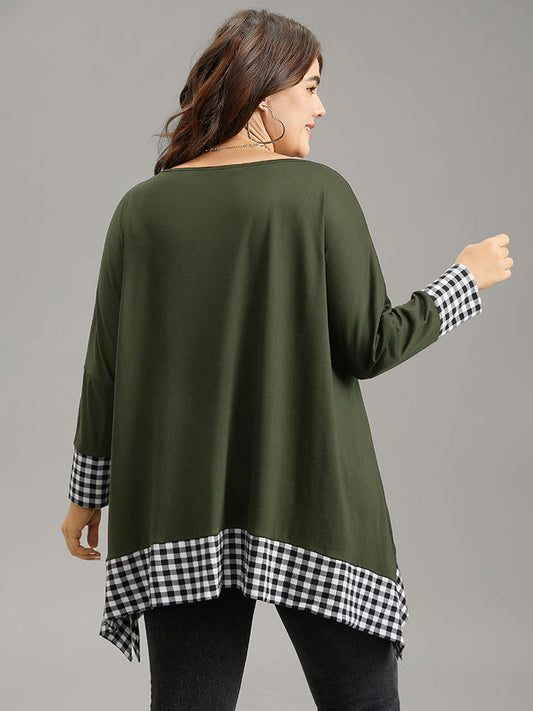 Plaid Patchwork Hanky Hem T-shirt