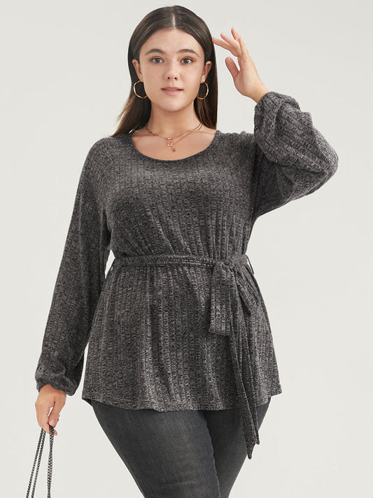 Solid Lantern Sleeve Crisscross Wrap Long Tee