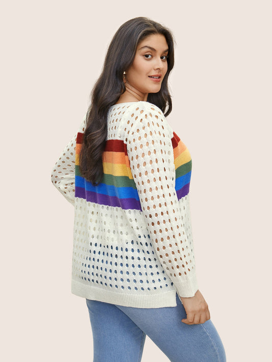 Contrast Striped Boat Neck Cut Out Sweater T-shirt