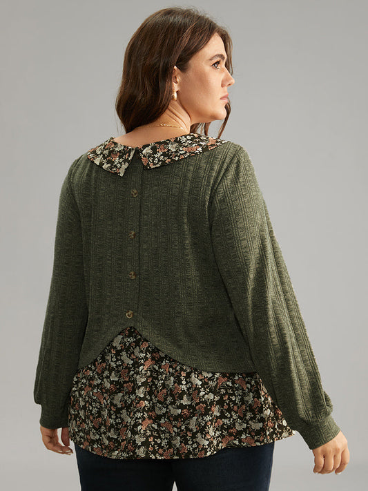 Ditsy Floral Patchwork Button Detail Lapel Collar T-shirt