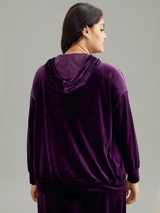 Lace Panel Hooded Velvet Zipper Sleep Top