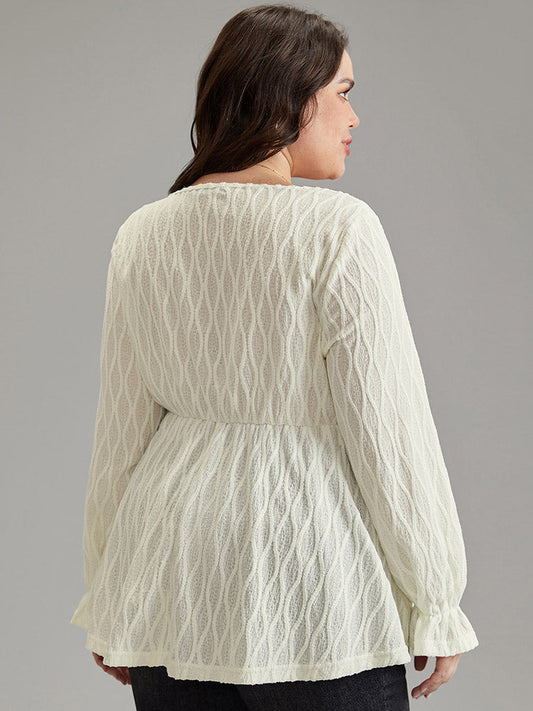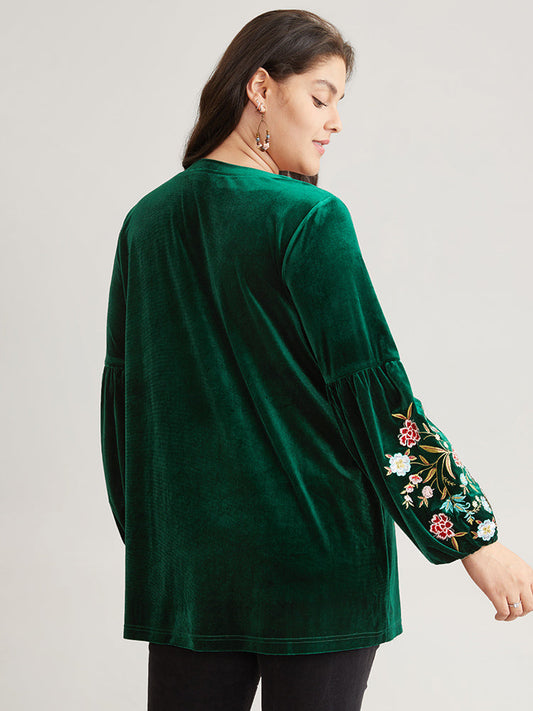 Bandana Embroidered Round Neck Lantern Sleeve T-shirt
