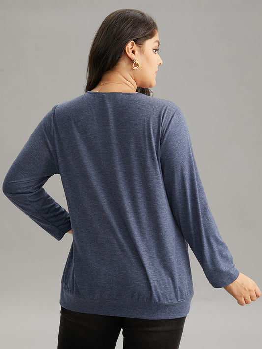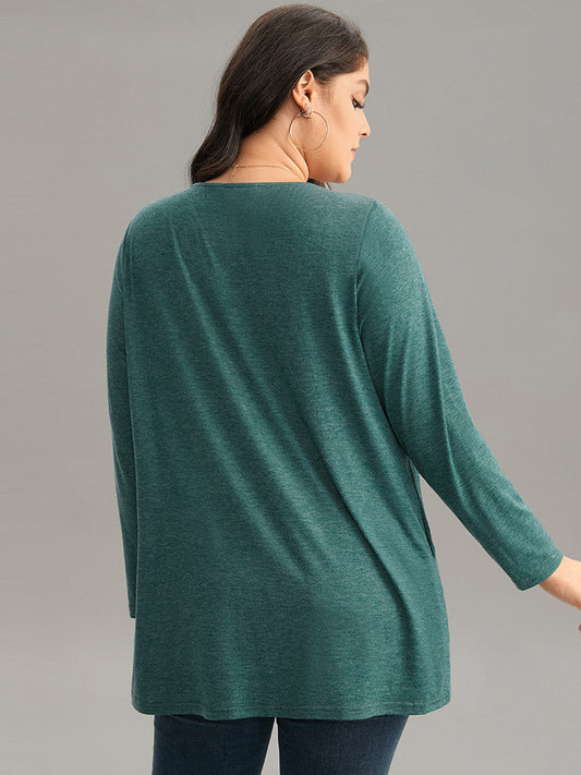 Solid Heather Round Neck Plicated Detail T-shirt