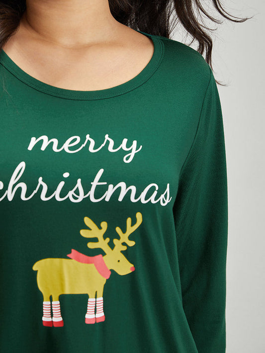 Christmas Elk Print Round Neck Sleep Top