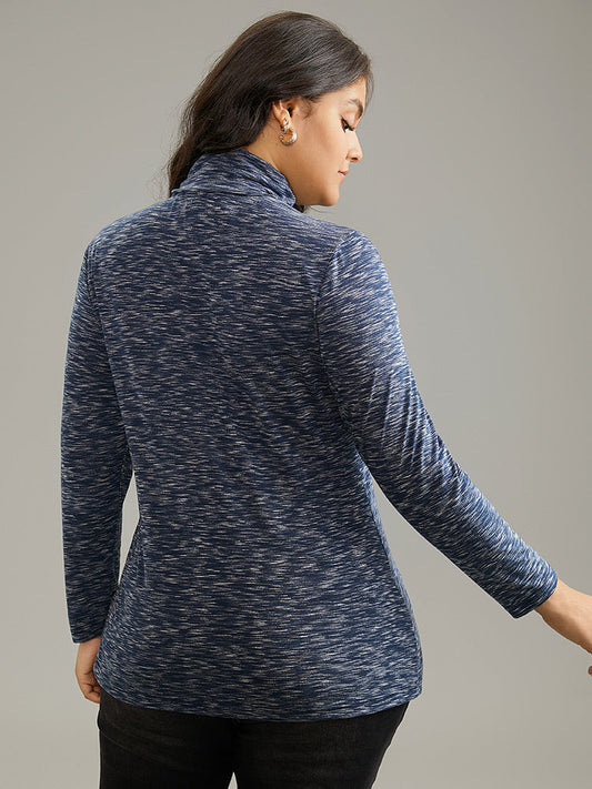 Solid Heather Funnel Neck Knit T-shirt