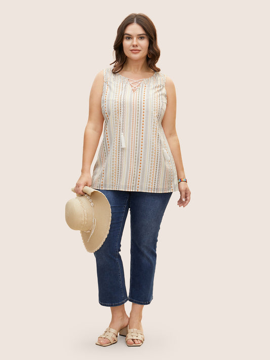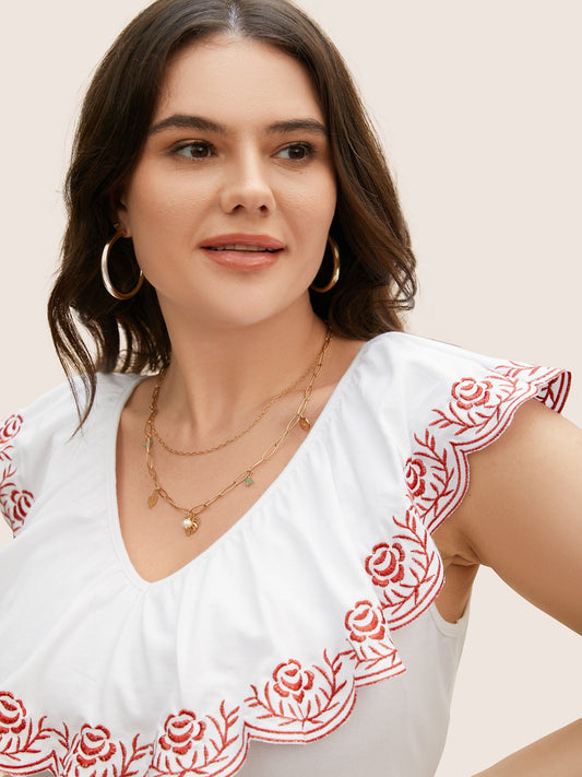Bandana Floral Embroidered Ruffle Trim Tank Top