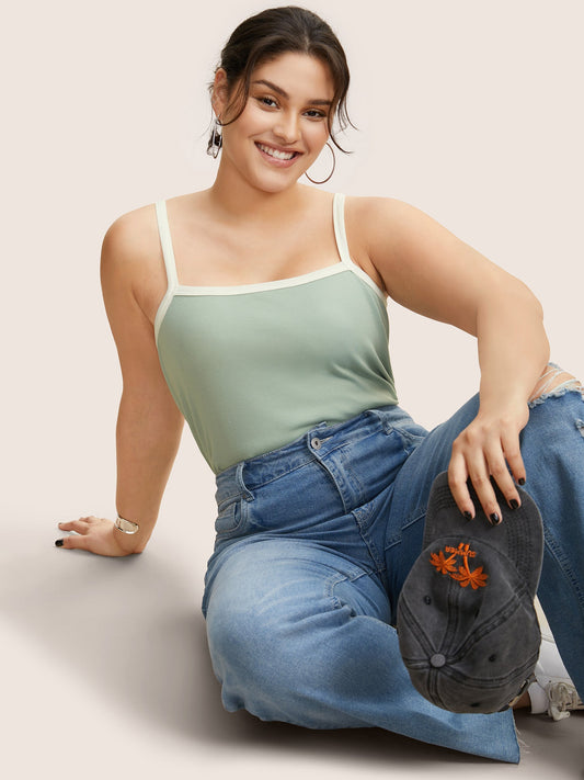 Cotton Square Neck Contrast Trim Pit Strip Cami Top