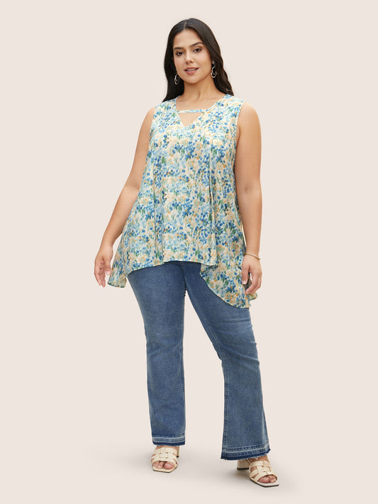 Watercolor Floral Keyhole Hanky Hem Tank Top