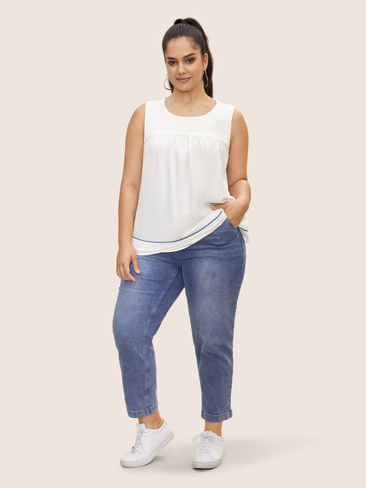 Contrast Trim Shirred Gathered Tank Top