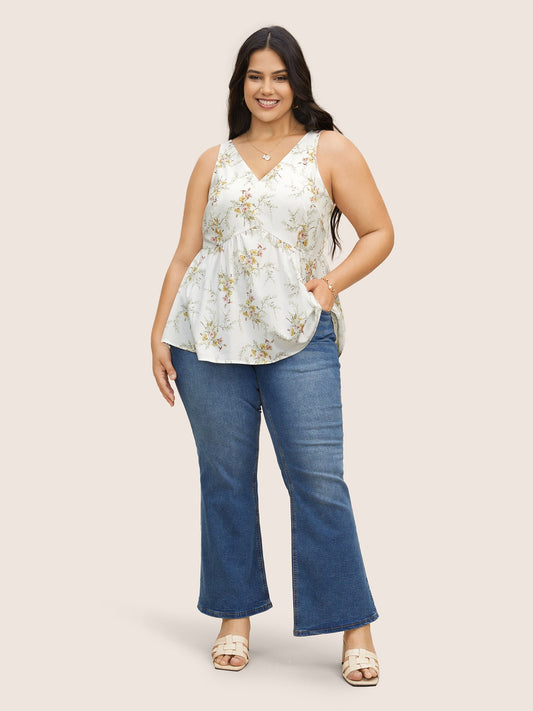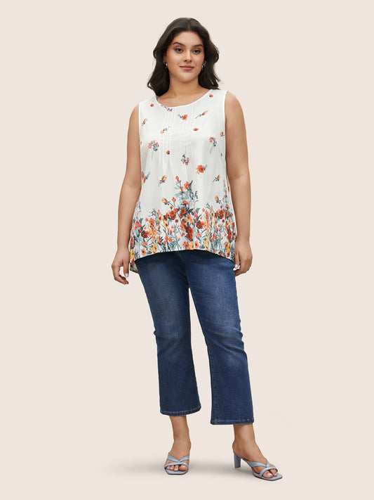 Watercolor Floral Tucked Seam Tank Top