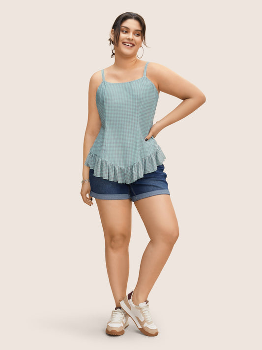 Gingham Adjustable Straps Ruffle Trim Cami Top