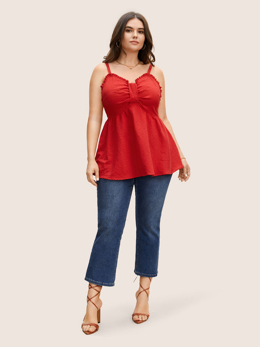 Solid Patchwork Ruffle Trim Adjustable Straps Cami Top