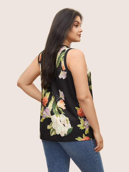 Ditsy Floral Frill Trim Adjustable Straps Cami Top