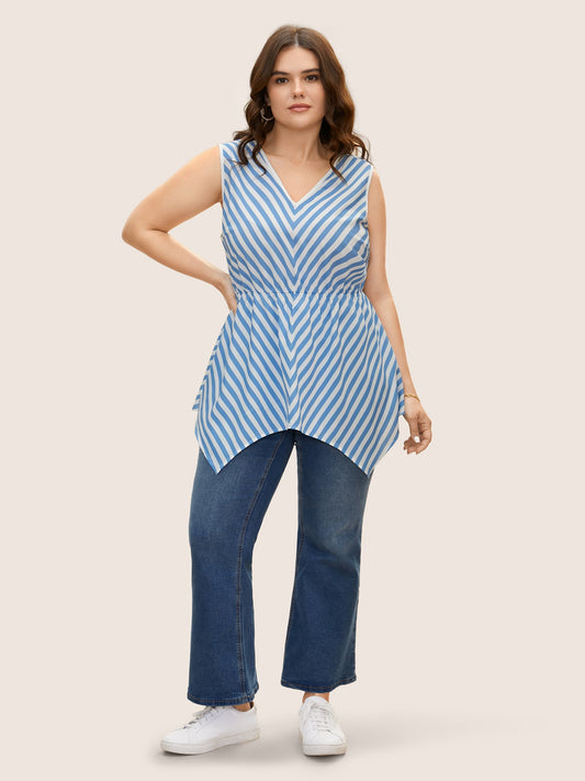 Notched Collar Gingham Contrast Patchwork Tank Top