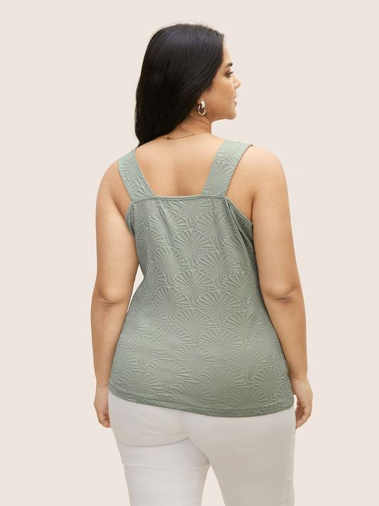 Textured Lace Up Tassel Pompom Trim Tank Top
