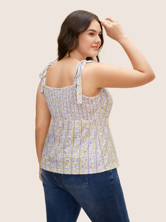 Boho Print Ruffle Trim Elastic Waist Cami Top